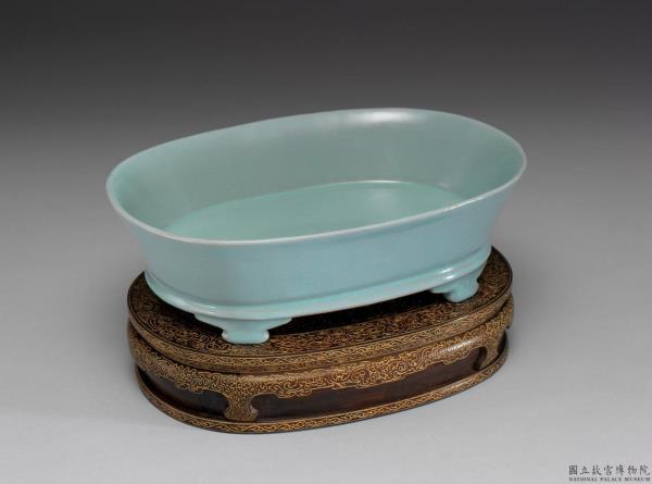 A daffodil pot glazed in the style of the Official Kiln (18th century) in the collection of the Palace Museum, Beijing; images from Xu Bingbin 許冰彬, “Qianlong Huangdi yu mao: cong Qinggong suo cang de maoshipen tanqi” 乾隆皇帝與貓:從清宮所藏的貓食盆談起 (Qianlong Emperor and Cats: On the Cat Bowls in the Qing court), Zijincheng 紫禁城 2021 (10): 130-141 (https://www.dpm.org.cn/explode/others/256562.html)